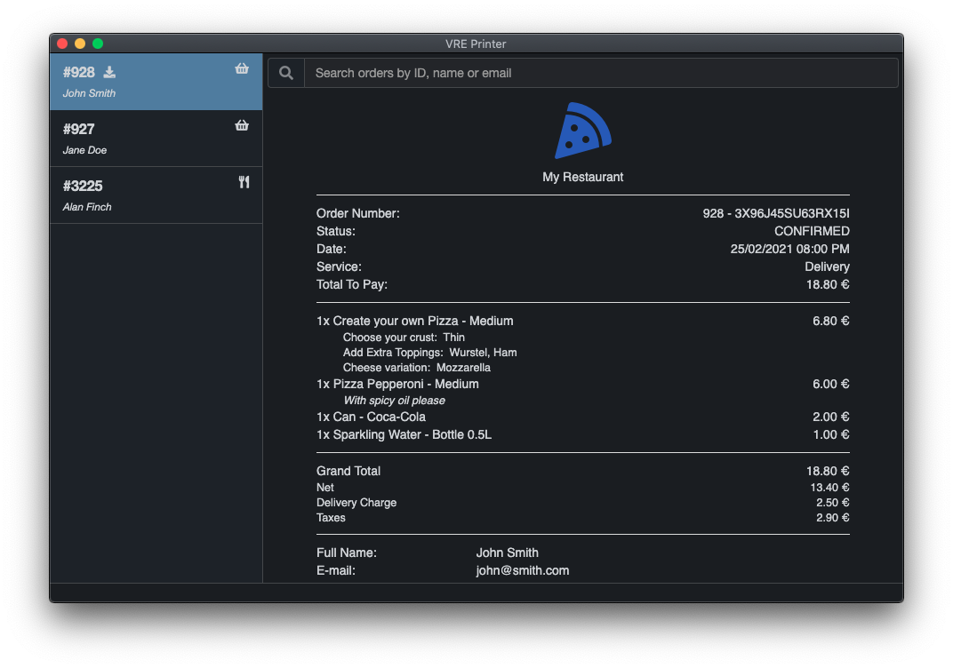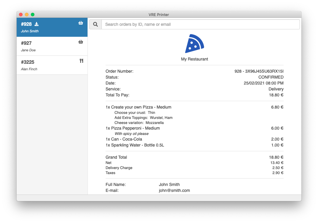 VRE Printer will be connected to your personal website, in which VikRestaurants is running, so that it will be able to automatically download new orders and print them.